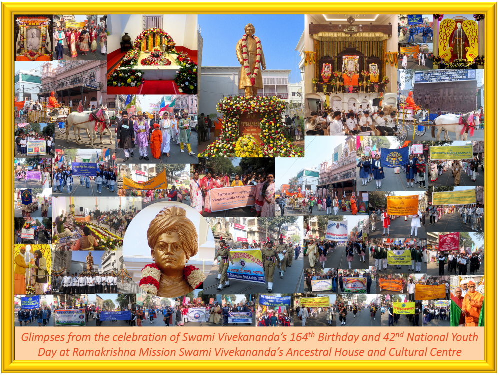 Ramakrishna Mission Swami Vivekananda’s Ancestral House and Cultural Centre celebrated the 164th birthday of Swami Vivekananda and the 42nd National Youth Day on 12 January 2026 with solemnity, joy, and enthusiasm. The day began with Mangal Arati at dawn and concluded late in the evening with soul-moving devotional songs.